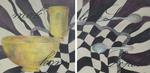 Schilderijen met op het eerste gezicht herkenbare keukenspullen. Als je er langer naar kijkt, zie je steeds meer