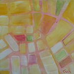 De in dit project vierkante met acrylverf beschilderde schilderijen kenmerken zich door verrassend kleurgebruik. De kleuren zijn fel en zacht tegelijk. De schilderijen zijn druk maar stralen toch een bepaalde rust uit. Geordend door middel van lijnen en vlakken.